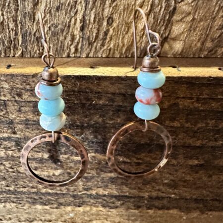 Boho Hippie Western Delicate Copper & Turquoise Beads Drop Wire Earrings, Gift Box