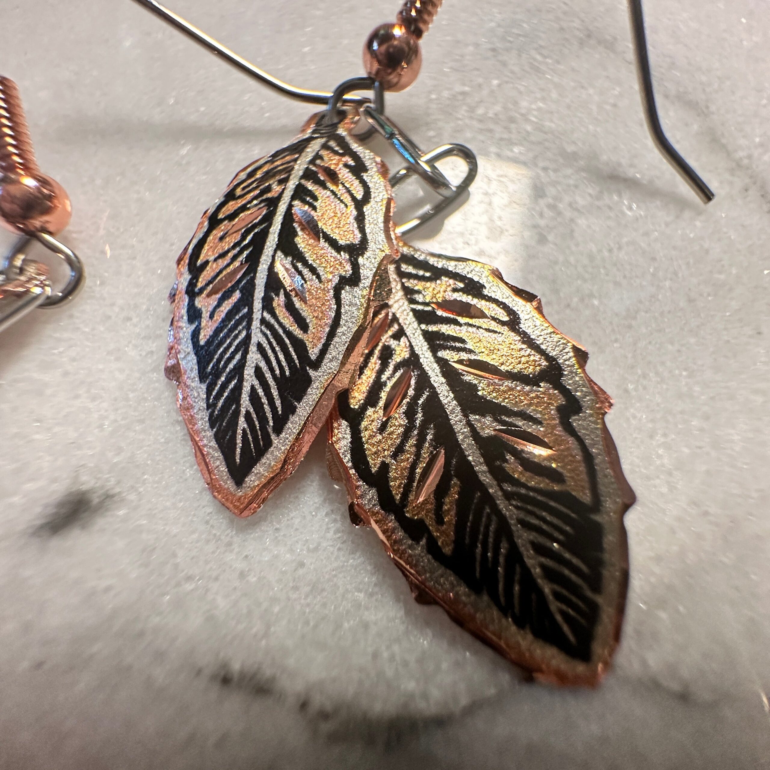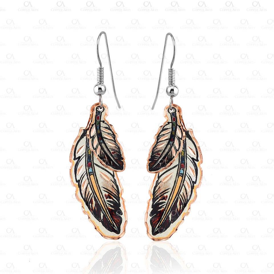 Expertly handcrafted with a boho twist, these Native American-inspired copper earrings feature a delicate eagle feather design. The wire drop style adds a touch of elegance to any outfit. Elevate your accessories game with these unique and ethically made statement pieces.