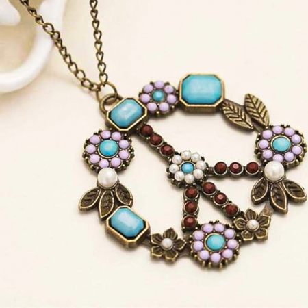 4pcs/set Vintage Peace Sign Butterfly Jewelry Set with Time Gemstone Pendant