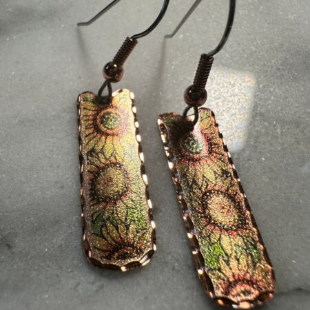 Handcrafted Boho Copper Diamond Cut Sunflower Wire Drop Earrings