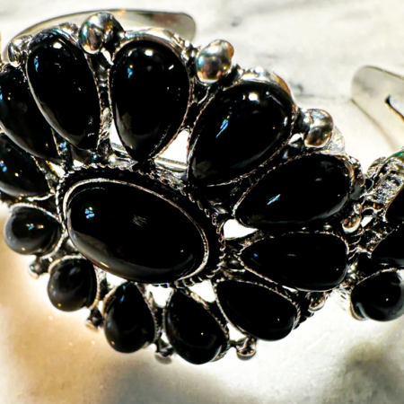 Inlaid Black Color Faux Gemstone Open Cuff Bangle Bracelet