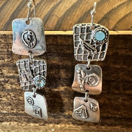 Boho Hippie Western Delicate Square Silver Drop Wire Earrings, Gift Box