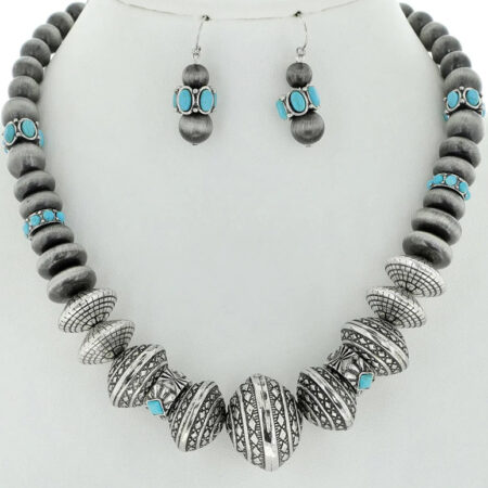 Boho Metal Bali Bead Stone Necklace Earrings Set