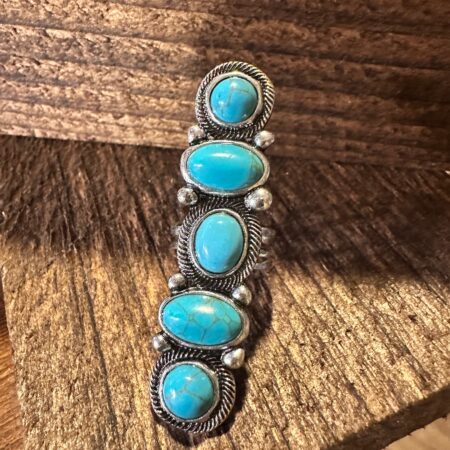 Boho Hippie Western Turquoise Circle & Oval Semi Stone Pave Linear Bar Cuff Ring, Gift Box